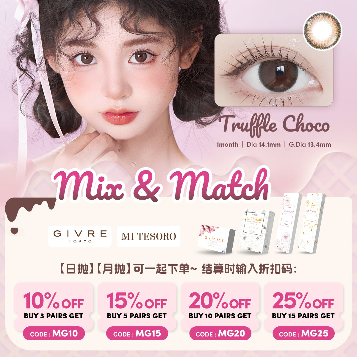 Mousse Pink-Mi Tesoro Monthly Color Con 2pcs (Eff dia:16mm)