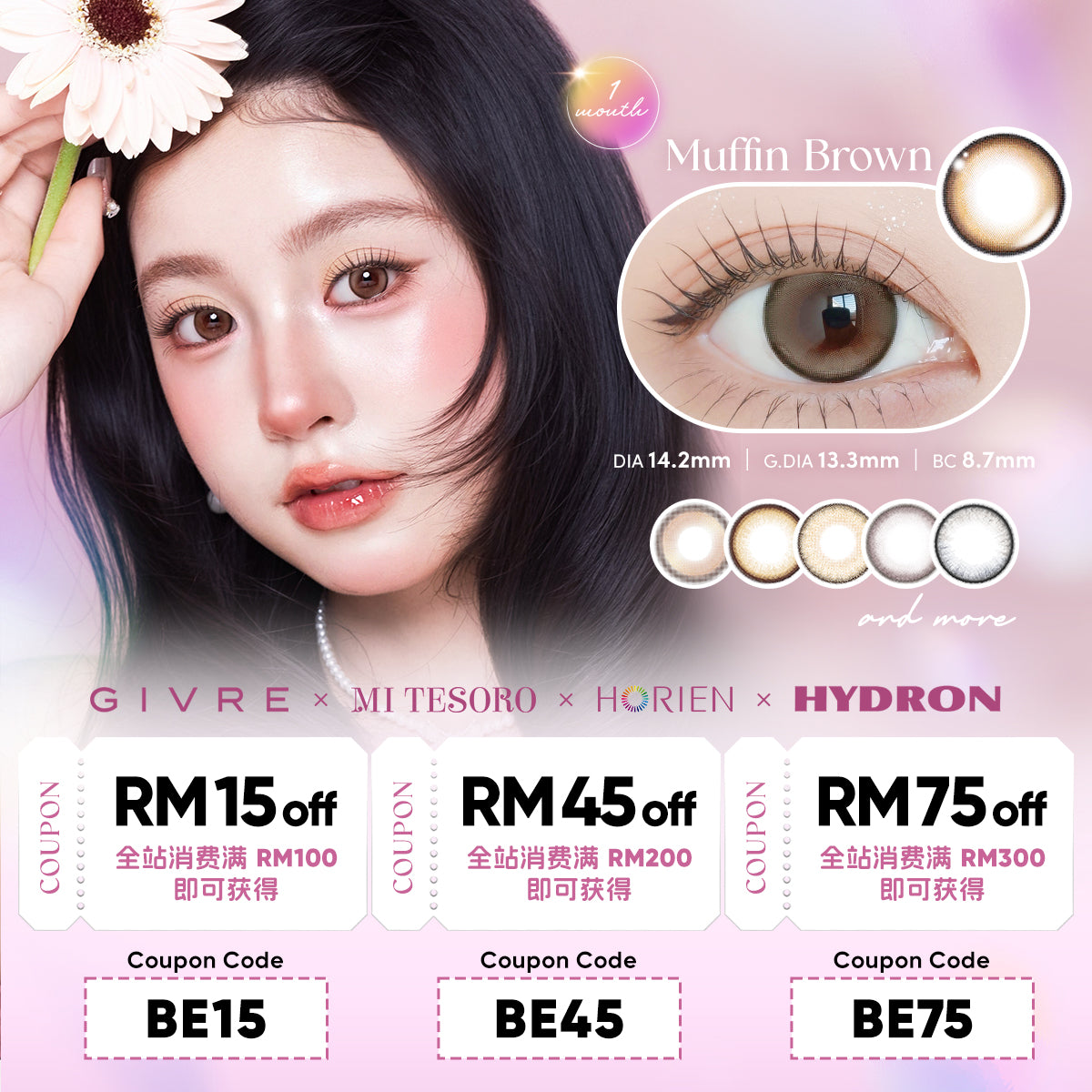 Me Time Brown-Kira-Kira Monthly Color Lens 2pcs (Eff dia:15mm)